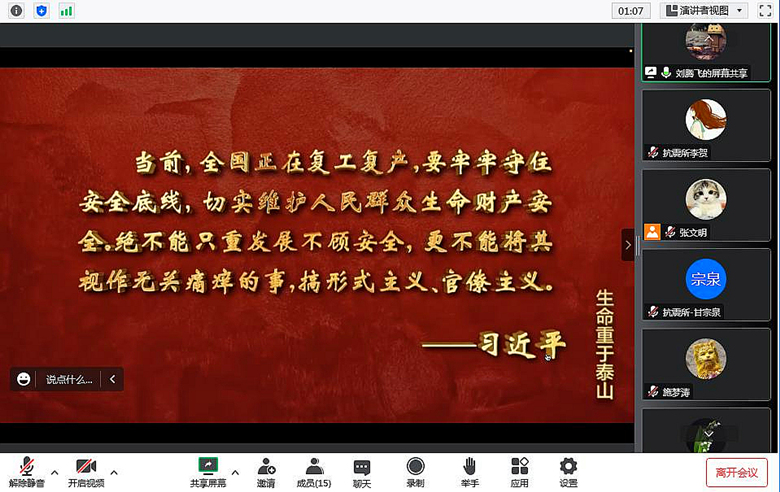 培訓主要分兩部分,首先組織大家認真觀看了《安全重于泰山》電視專題片。專題片通過專家解讀和案例分析系統解讀了安全發展、嚴守底線、強化責任、依法治理、改革創新、夯實基礎、嚴抓落實等重要內容,強調只有警鐘長鳴、常抓不懈,才能真正守住安全生產的底線和紅線。