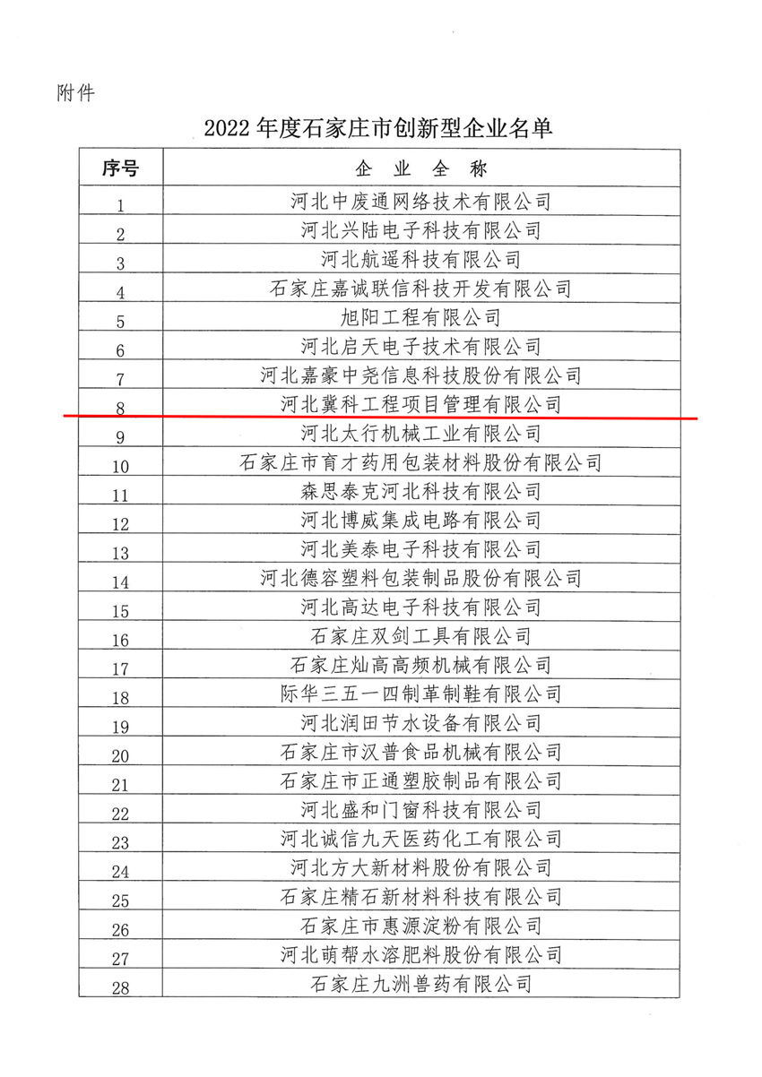 近日,石家莊市科技局、石家莊市國(guó)資委、石家莊市總工會(huì)下發(fā)了《關(guān)于公布石家莊市創(chuàng)新型企業(yè)的通知》,我院冀科公司被認(rèn)定為石家莊市創(chuàng)新型企業(yè)。